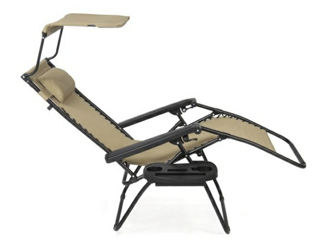 ★アウトドアチェア★北米ウォールマート発★リクライニングチェア★無段階角度調整★屋根&トレー付★リラックスチェア★クリーム★