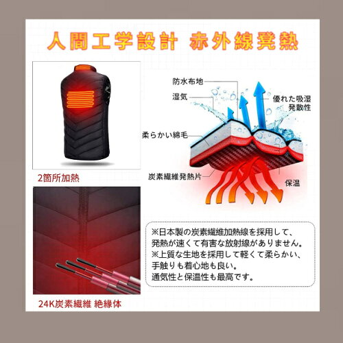 サイズ:M,L,XL,2XL,3XL 素 材:ポリエステル繊維 入力電圧:5V/2A 安心の日本語取り扱い説明書付き 【注意事項】 ◆この商品は5V2Aのモバイルバッテリーのみお使いください。